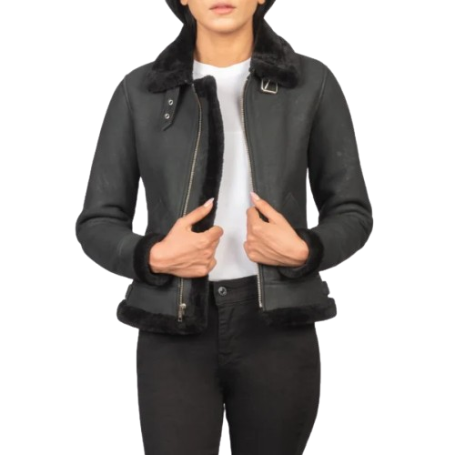 Women Sherilyn B3 Black Leather Shearling Jacket